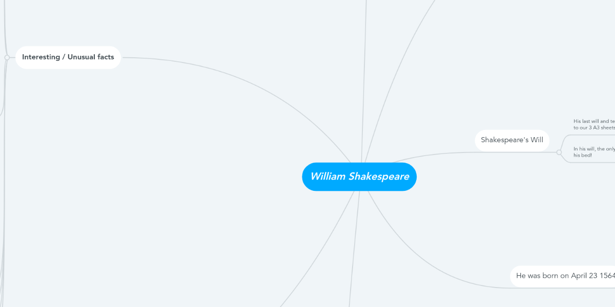 Shakespeare's works, interactive mind map, source: To see a note, hover over a note button above. Ihre mindmap können sie auch als datei speichern und sie in die datenbank hochladen (unter <map aktionen> auf <exportieren> klicken, wählen sie hier das gewünschte format aus, klicken sie auf <exportieren> und speichern sie die datei auf ihrem computer. William shakespeare wrote at least 37 plays that scholars know of, with most of them labeled is comedies, histories, or tragedies. Made for free at coggle.it. James 1 was born in 19th junes 1566 and died on 27th march 1625. Gedankenlandkarte, gedächtnislandkarte) beschreibt eine von tony buzan geprägte kognitive technik, die man z. Vieles neues finden sie in diesem umfassenden mindmap zu william shakespeare. Le opere di shakespeare sono le più rappresentate di tutti i tempi e in tutto il mondo. William shakespeare, who was the first man in the world to receive a covid vaccination has died at the age of 91 after a long illness unrelated to the virus. Le opere di oggi si basano su copie illegali dell'epoca. One of the disadvantages is that the books are often poorly formatted. Deutsch english español français hungarian italiano nederlands polski português (brasil) română svenska türkçe ελληνικά български русский српски العربية فارسی 日本語 한국어.